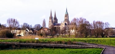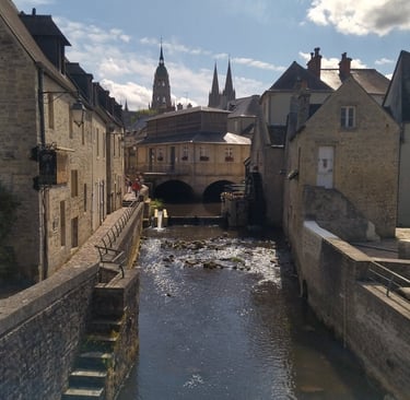 Fondée à l'époque gallo-romaine sous le nom d'Augustodurum, Bayeux sera intégrée au duché normand de Rollon, chef viking, en 924. C'est au XIème siècle, que la ville prendra de l'importance grâce à Odon de Conteville, demi-frère de Guillaume le conquérant roi et duc de Normandie. Mondialement connue pour sa tapisserie, classée à l’UNESCO, Bayeux inspire à la flânerie.
