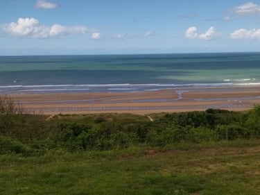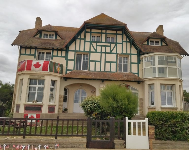 Plusieurs arrêts possible sur la plage de Juno tels que Graye-sur-Mer et Bernières-sur-Mer où la maison des Canadiens trône encore.