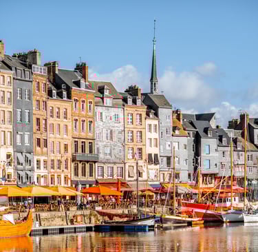 Du port d’Honfleur où Samuel De Champlain partira pour fonder Québec en 1608 en passant par le village de Beuvron-en-Auge, un des plus beaux village de France avec ses maisons à pans-de-bois et toit de chaume, le pays d'Auge est le paysage typique normand ses chaumières, ses vergers et ses vaches normandes.